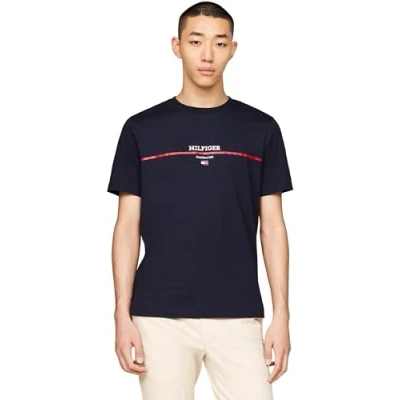 Tommy Hilfiger Men's Short Sleeve Round Neck Stripe T Shirt, Blue (Desert Sky), XS