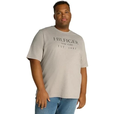Tommy Hilfiger Men's Short Sleeve Round Neck T Shirt, Beige (Heathered Pebble), XXL