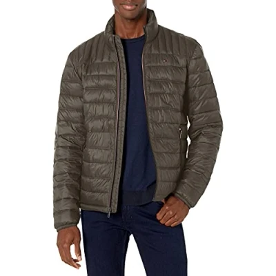 Tommy Hilfiger Men's Ultra Loft Packable Puffer Jacket Down Alternative Coat, Olive, XL Tall