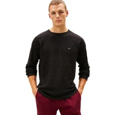 Tommy Hilfiger Men’s Waffle Long Sleeve Top with Round Neck, Black (Black), L