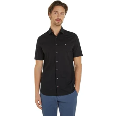 Tommy Hilfiger Men Short Sleeve Shirt, Black (Black), 44