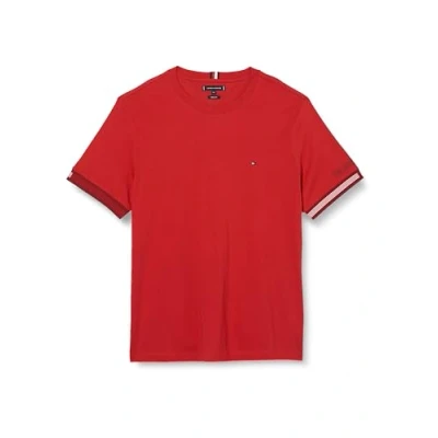 Tommy Hilfiger Men Short Sleeve T Shirt Flag Cuff Tee Crew Neck, Red (Primary Red), XXL