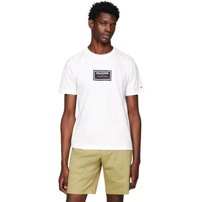 Tommy Hilfiger Men Short Sleeve T Shirt Label Print Crew Neck, White (White), XS