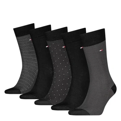 Tommy Hilfiger MEN SOCK Giftbox Herringbone DOT 5 PACK Socks, Men's, Size: 9 11.5, Black