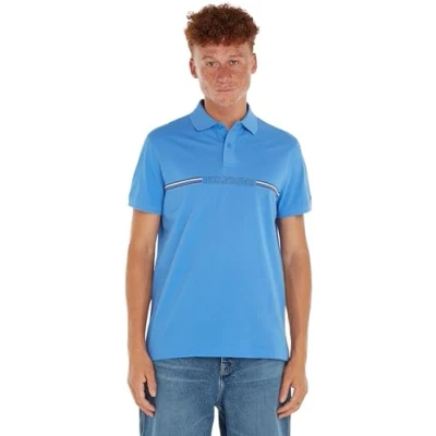 Tommy Hilfiger Men Stripe Chest Reg Polo S/S Polos, Blue, M