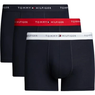 Tommy Hilfiger Men’s 3 Pack Trunks with Logo Waistband, Multicolor (Primary Red/White/Desert Sky), M