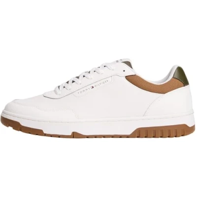 Tommy Hilfiger Men’s Basket Core Low Top Cupsole Trainers, Multicolor (Ecru/Army Green), 10.5