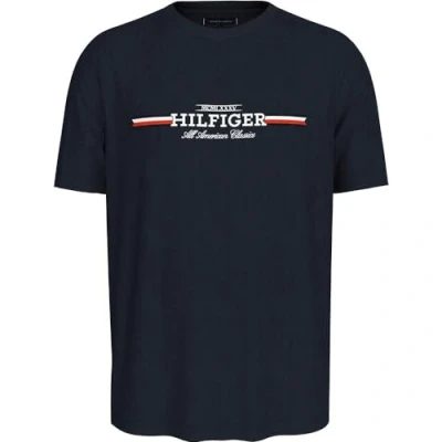 Tommy Hilfiger Men's Chest Stripe Short Sleeve Round Neck T Shirt, Blue (Desert Sky), S