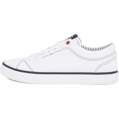 PREMIUM DESIGN: These sporty trainers impress with their stylish design and textured finish. The Tommy Hilfiger branding and the chic Tommy Hilfiger flag add the finishing touches to the shoe. OPTIMAL FIT: These original Tommy Hilfiger lace-up trainers don't just look great – they also fit your feet perfectly. FOR EVERY OCCASION: These stylish trainers work just as well with elegant looks as they do with your everyday outfits. The premium quality material means they're comfortable to wear all day long. PREMIUM MATERIAL: The upper is 60% recycled cotton and 40% Better Cotton Initiative cotton. PROVEN QUALITY: The designer brand has been captivating the global fashion industry with its high-quality and lightweight designs in a wide range of styles in its famous dark blue, white and red colours since 1985.