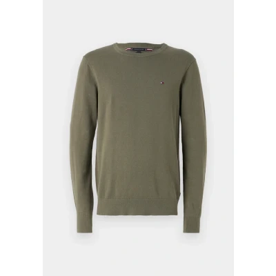 Tommy Hilfiger Men’s Essential Cotton Round Neck Jumper, Green (Battle Green), XL