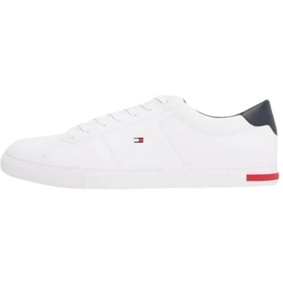 PREMIUM DESIGN: These athletic trainers make a statement thanks to their stylish design and materials. Tommy Hilfiger branding and the stylish Tommy Hilfiger flag ebmroidered on the side add a finishing touch to the shoes. OPTIMAL FIT: These original Tommy Hilfiger lace-up trainers feature a genuine leather upper to ensure supreme comfort. They don't just look great – they also fit your feet perfectly. FOR ANY OCCASION: Pair the casual trainers with vulcanised rubber soles with any relaxed casual look. The high-quality material ensures a comfortable feel all day long. PREMIUM MATERIAL: The shoe’s upper is made from 100% leather, the lining is cotton, and the sole is vulcanised natural rubber. PROVEN QUALITY: The designer brand has been captivating the global fashion industry with its high-quality and lightweight designs in a wide range of styles in its famous dark blue, white and red colours since 1985.