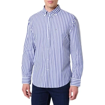 ICONIC & TIMELESS: The original Tommy Hilfiger shirt boasts a classic cut and a button down collar. This simple, effortless shirt is a classic piece that belongs in every wardrobe. COMFORT & DETAILS: Crafted from a premium fabric, this regular fit shirt feels pleasant against the skin all day long. The Tommy Hilfiger branding adds that little something extra to the look. CLASSIC ALL-ROUNDER: With so many ways to style it, this shirt will enhance any outfit. It pairs perfectly with trousers for the office and casual jeans on the weekend. MATERIAL & CARE: The shirt is made from 50% regenerative cotton and 50% Better Cotton Initiative cotton. It is machine washable and suitable for the tumble dryer. PROVEN QUALITY: The designer brand has been captivating the global fashion industry with its high-quality and lightweight designs in a wide range of styles in its famous dark blue, white and red colours since 1985.