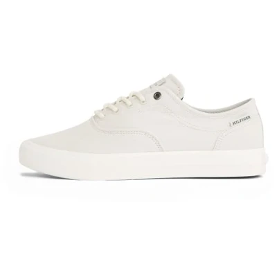 Tommy Hilfiger Men’s Low Oxford Twill Vulcanised Trainers with Logo, White (Alabaster), 8