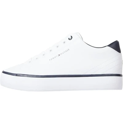Premium design: the elegant trainers impress with their stylish design. The Tommy Hilfiger branding rounds off the shoe. Optimal fit: the original Tommy Hilfiger lace-up trainers are not only visually eye-catching, but also adapts perfectly to your foot. For any occasion: the chic trainers match your everyday look, but can also be combined well with elegant clothing for special occasions. The high-quality material ensures a comfortable wearing experience all day long. High-quality material: the upper material of the trainers is made from 50% recycled leather, 20% recycled polyester and 15% polyester polyester and 15% polyurethane. Proven quality: since 1985, the designer brand has convinced worldwide with its quality and lightness with a variety of styles in the well-known colours dark blue, white and red.