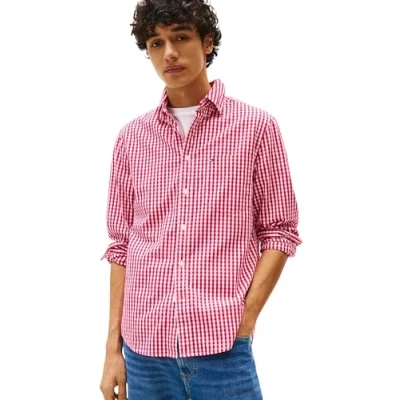 Tommy Hilfiger Men’s Poplin Gingham Cotton Shirt, Multicolor (Vivacious Pink/Check), XL