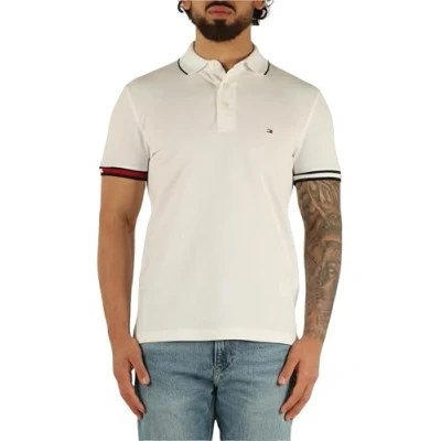 Tommy Hilfiger Men’s Short Sleeve Flag Cuff Slim Fit Polo Shirt, White (White), XXL