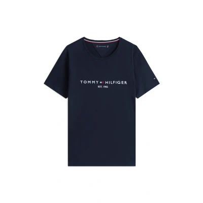 Suitable ShopTommy Hilfiger Logo T Shirt Navy Tommy Hilfiger Logo T Shirt Navy in de kleur Dark Blue en Blue met een pasvorm Modern-Fit is gemaakt van Cotton met een Brand logo en Plain dessin en Short sleeves.