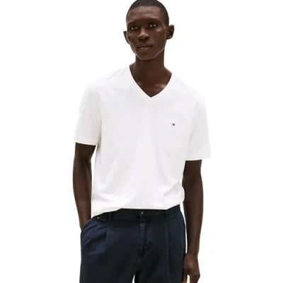 Tommy Hilfiger Men’s Short Sleeve V Neck Essential T Shirt, White (White), XXL