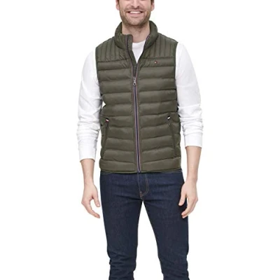 Tommy Hilfiger mensLightweight Down Quilted Puffer Vest Long Sleeve Green X Large