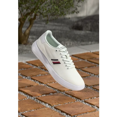 PREMIUM DESIGN: These elegant trainers impress with their stylish design and premium material. The Tommy Hilfiger flag on the side adds the final touch to the shoe. OPTIMAL FIT: These original Tommy Hilfiger lace-up trainers don't just look great – they also fit your feet perfectly. FOR EVERY OCCASION: These smart trainers work just as well with elegant occasion looks as they do with your everyday outfits. The premium material ensures they're comfortable to wear all day long. PREMIUM MATERIAL: The shoes are made from 75% recycled polyester and 25% polyamide. PROVEN QUALITY: The designer brand has been captivating the global fashion industry with its high-quality and lightweight designs in a wide range of styles in its famous dark blue, white and red colours since 1985.