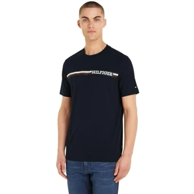Tommy Hilfiger Monotype Chest Stripe TEE Print Tshirt, Men's, Size: Small, Desert sky