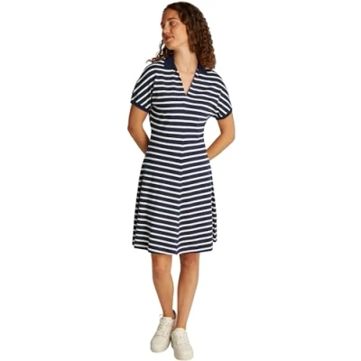 ICONIC & TIMELESS: This original Tommy Hilfiger polo dress with V-neckline comes in a casual design. An embroidered Tommy Hilfiger flag adds that little something extra to the look. OPTIMAL FIT: This timeless dress with a classic polo collar will flatter your figure. The fit and flare dress impresses with its soft material and feminine cut. FOR ANY OCCASION: With its high comfort, this dress is the perfect foundation for any smart casual outfit. The polo dress is ideally suited to the office or everyday wear and is versatile in combinations. MATERIAL & CARE: The dress is made from 65% lyocell, 32% Better Cotton Initiative cotton and 3% elastane. It is machine washable. PROVEN QUALITY: The designer brand has been captivating the global fashion industry with its high-quality and lightweight designs in a wide range of styles in its famous dark blue, white and red colours since 1985.