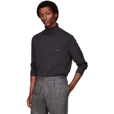 Tommy Hilfiger PIMA ROLL NECK Jumper, Men's, Size: Medium, Dark grey heather