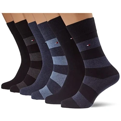 Tommy Hilfiger Rugby SOCK 6PACK ECOM Socks, Men's, Size: 6 8, Blue black combo