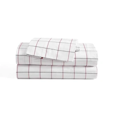 TOMMY HILFIGER HOME: Classic American preppy brand known for its bold use of red, white, and blue, offering high-quality apparel, accessories, footwear, and bedding, with a global presence and strong cultural ties to streetwear, hip-hop, and fashion collaborations. CRISP AND FRESH FEEL: Crafted from 100% percale cotton weave, these sheets have a crisp, breathable texture that enhances comfort while promoting airflow for a restful night’s sleep. With a 200-thread count, these sheets are soft yet durable, offering the perfect balance of lightweight breathability and long-lasting quality HASSLE-FREE UPKEEP: Machine wash warm with like colors and before first use, tumble dry low SET INCLUDES: Flat Sheet- 96" L x 81" W, Fitted sheet- 75" L x 54" W, Standard pillowcases- 20" L x 30" W CERTIFICATIONS: OEKO-TEX certified for quality and sustainability you can trust.
