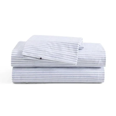 Tommy Hilfiger Sheet Set, Cotton Percale Bedding with Matching Pillowcases, Crisp & Cool, Premium Quality Home Essentials (Monogram Stripe Blue, King)