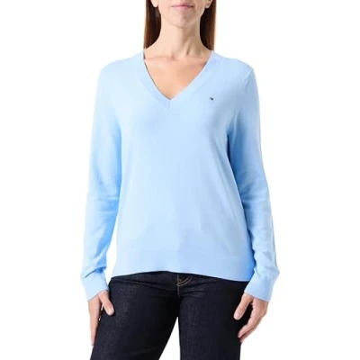 ICONIC & TIMELESS: This original Tommy Hilfiger jumper impresses with its classically elegant yet simple design. The pretty V-neckline makes this a classic piece. OPTIMAL COMFORT: The flattering cut of this jumper will help you feel your best. This knitted top is neither too thick nor too thin, making it perfect for both the transitional seasons and winter. FOR ANY OCCASION: This elegant classic is comfortable to wear and versatile to combine into outfits. The result is a jumper perfect for the office, evenings or everyday wear. MATERIAL & CARE: The jumper is made from 67% organic cotton and 33% polyamide. It is machine washable and suitable for the tumble dryer. PROVEN QUALITY: The designer brand has been captivating the global fashion industry with its high-quality and lightweight designs in a wide range of styles in its famous dark blue, white and red colours since 1985.