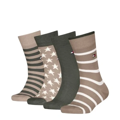 Tommy Hilfiger Unisex Kid's Breton Stripe Stars Classic Sock, Camel, 35 38 (Pack of 4)