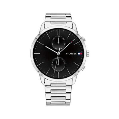 Multifunction Quartz movement Case thickness 9.5mm / Case Diameter 44mm Black sunray dial Stainless steel bracelet Water Resistance: 3ATM Faucet spray or rain won’t hurt them as long as the case, crown and crystal remain intact.