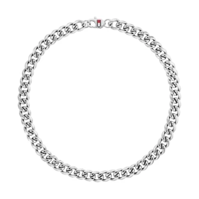 Tommy Hilfiger men's necklace with a bold Cuban-inspired chain, more than just an accessory—it's a statement of confidence Crafted from high-quality stainless steel, blending durability with a polished finish, perfect for everyday wear Necklace length: 457.20 mm, with a 50.8 mm extender for a customizable and comfortable fit Also available in gold, offering more options to match different tastes and styles Lobster clasp closure, ensuring a secure and comfortable fit all day, accented with the Tommy Hilfiger logo