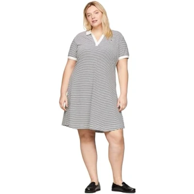 Tommy Hilfiger Women Polo Dress Striped, Multicolor (Breton Ecru/Desert Sky), M