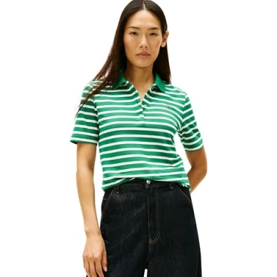 Tommy Hilfiger Women's 1985 REG Pique Polo SS WW0WW43224 S/S Polo, Green (Nouveau Green/Ecru STP), M