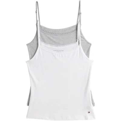 Tommy Hilfiger Women's 2 Pack Cami with Lace Uw0uw04892 Camisole, Beige (White/Grey Heather), M