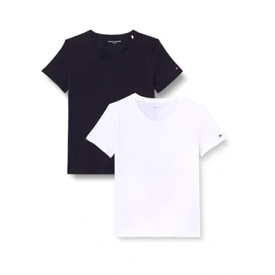 Tommy Hilfiger Women’s 2 Pack Short Sleeve Round Neck T Shirts, Multicolor (White/Black), M