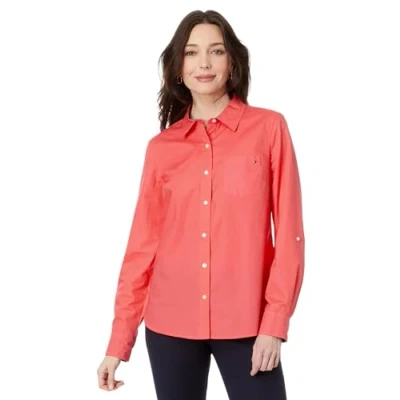 Tommy Hilfiger Women's Button Down Long Sleeve Collared Shirt with Chest Pocket, Sherbet, XS