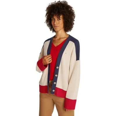 Tommy Hilfiger Women's Cardigan with Button Placket, Off White (Country Ivory), M L