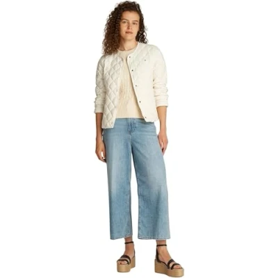 Tommy Hilfiger Women's Collarless Quilted Down Jacket with Button Placket, Off White (Ivory Petal), S