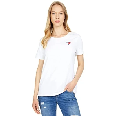 Tommy Hilfiger Women's Crew Neck Logo Tee, Bright White Heart, XL