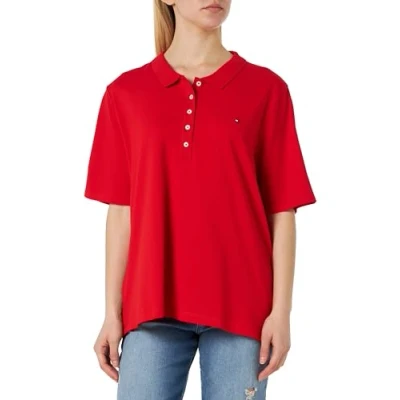 Tommy Hilfiger Women's CRV 1985 Reg Pique Polo Ss Ww0ww39597 S/S Polos, Red (Fierce Red), 46