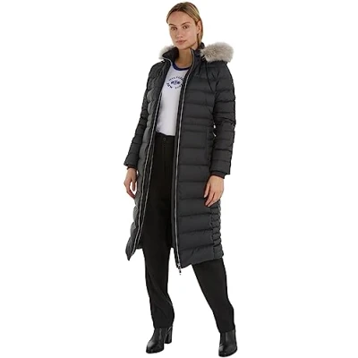 Tommy Hilfiger Women's Down Coat With Fur Winter, Black (Black), XXS