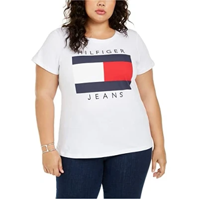 Tommy Hilfiger Women's Essential Basic Short Sleeve T Shirt, White, 2X
