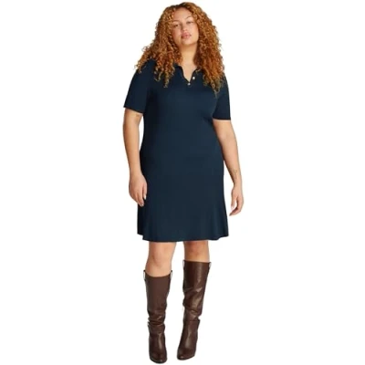 Tommy Hilfiger Women's Fit & Flare Polo Dress, Blue (Dark Night Navy), 18