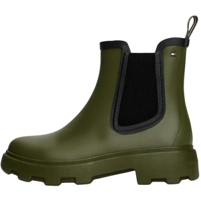 AmazonTommy Hilfiger Women’s Flag Ankle Rain Boots with Warm Lining, Green (Huntsman Green), 3.5