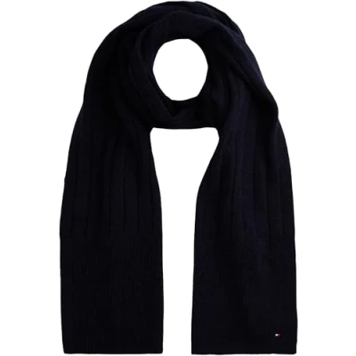 Tommy Hilfiger Women’s Flag Fluffy Ribbed Knit Scarf, Blue (Space Blue), One Size