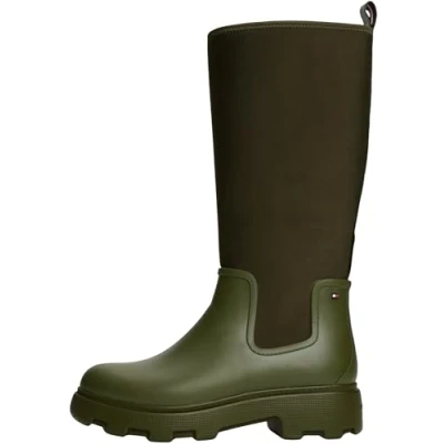 Tommy Hilfiger Women’s Flag Long Rain Boots with Warm Lining, Green (Huntsman Green), 4