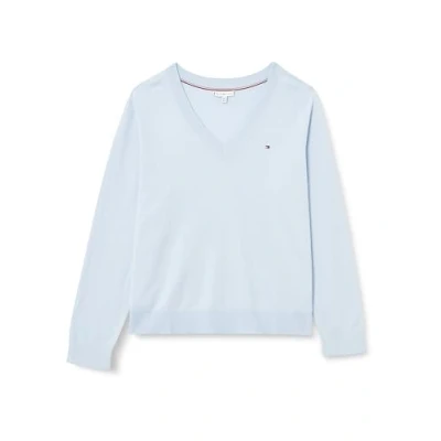 Tommy Hilfiger Women’s Jersey Stitch V Neck Jumper, Blue (Breezy Blue), 24